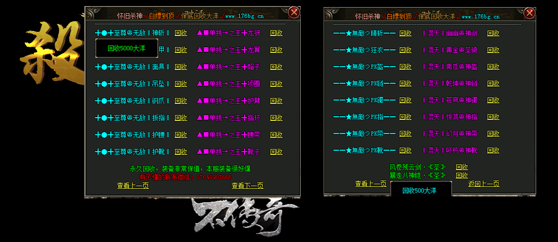 - 【介绍】 在线泡点.不卖装备. BOSS爆本服所有的终极装备
